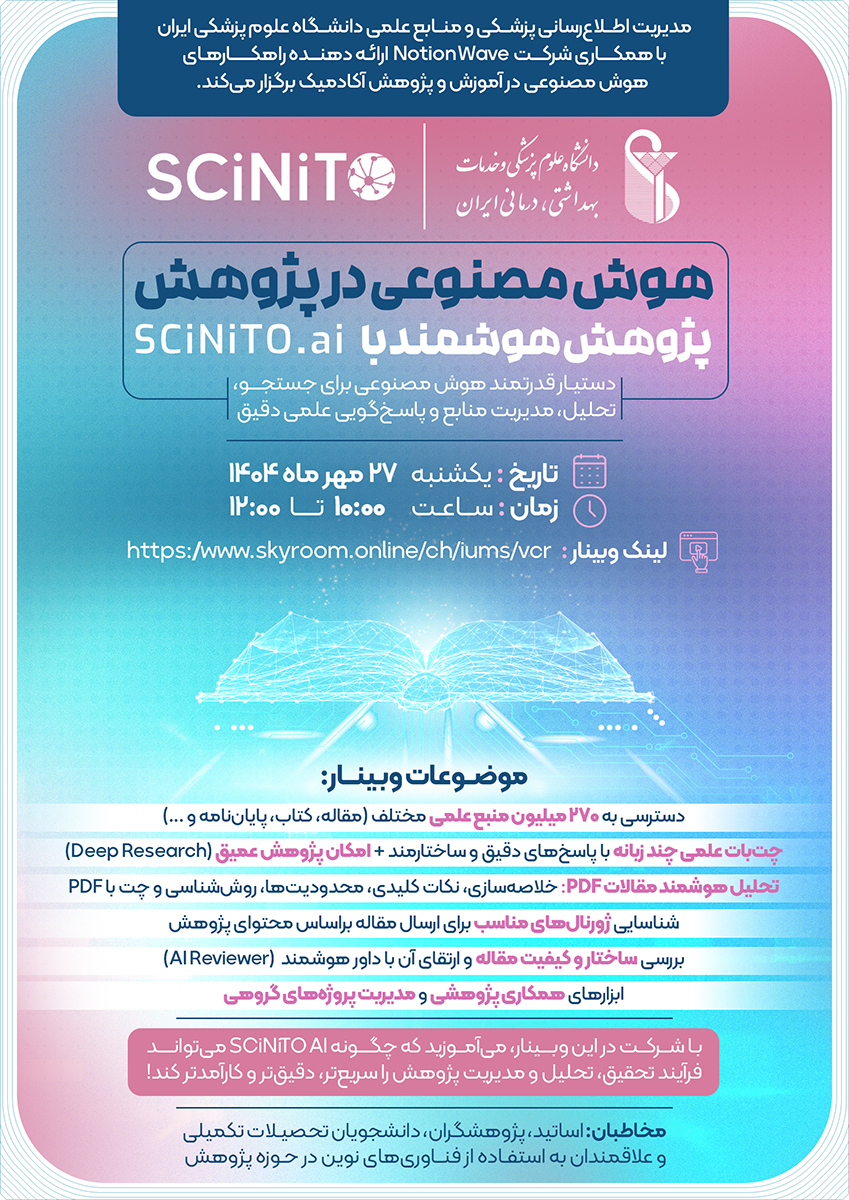 وبینار هوش مصنوعی در پژوهش 359545.mp3 وبینار هوش مصنوعی در پژوهش گروه اخبار : گروه های محتوا,اخبار و اطلاعیه ها,اخبار پايگاه کد خبر : 359545 : دریافت کلیدواژه ها